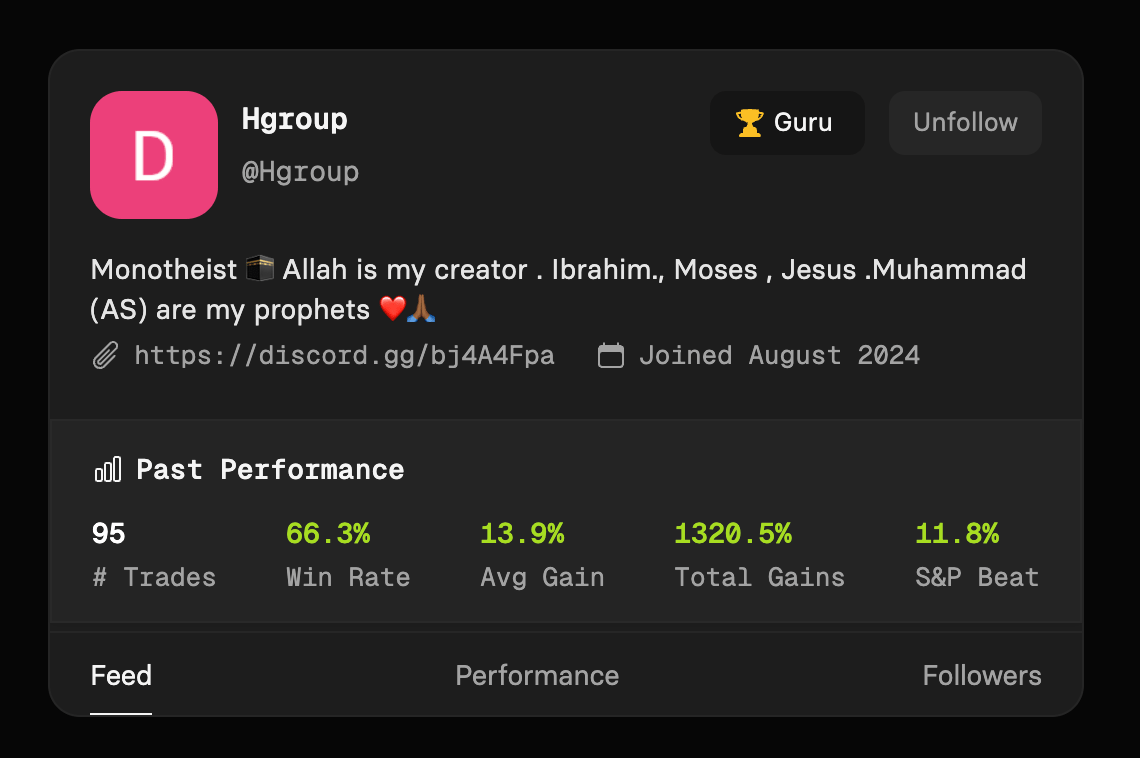 @HGroup: This week had a blast and so did our members who copied him. With 13 out of 16 trades in last day significantly in the green he closed the week with average gains of +36%. Here is a quick view of his trades for the week.